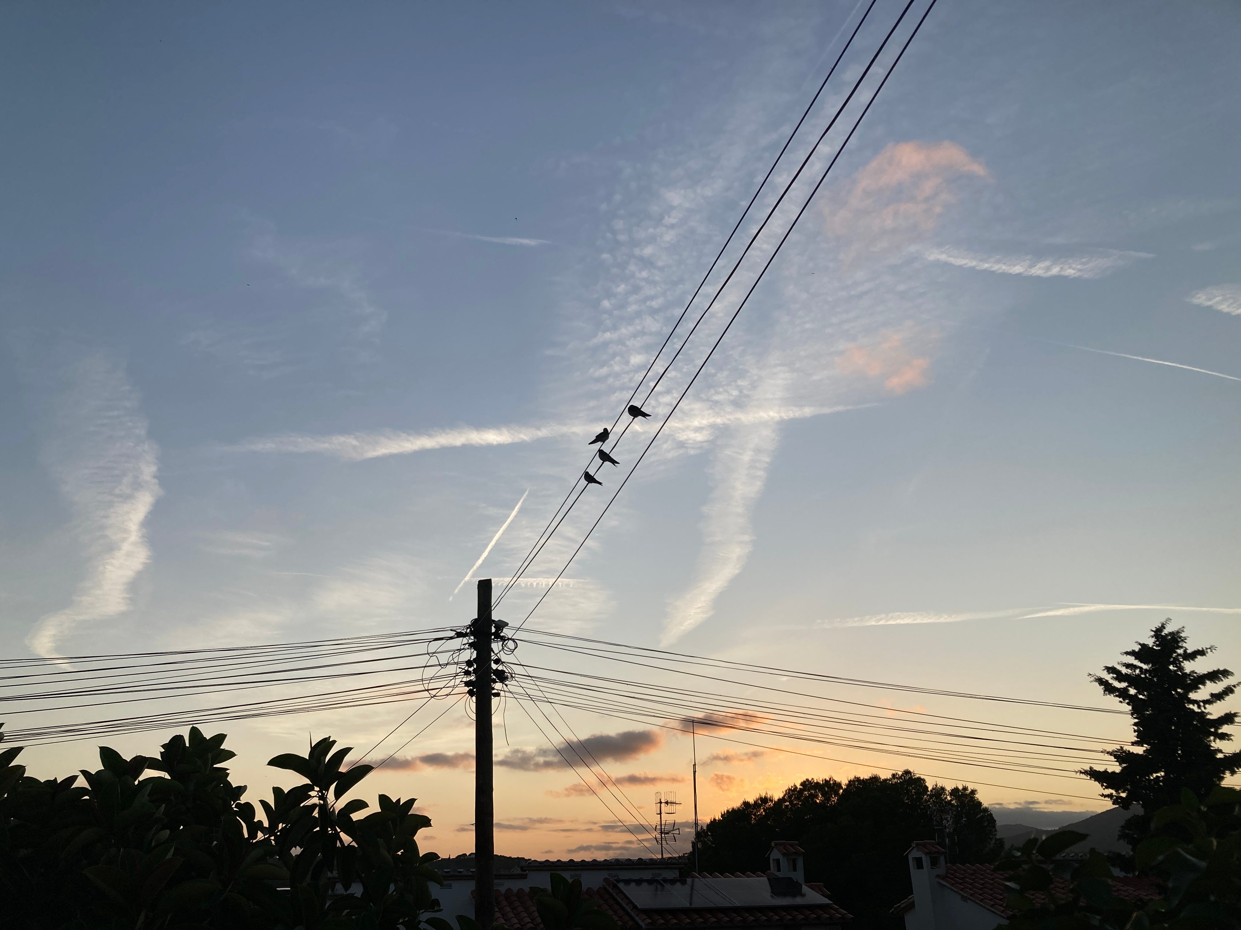They queue for bedtime above the street when the sun starts to turn pink. They chirp on the telephone wires that meet in a spaghetti junction above the corner of our garden. That’s their ‘community café’, their local haunt. They seem happy; each chirpy sentence rattles with energy and ends in a fun, clockwork up-winding twist.
