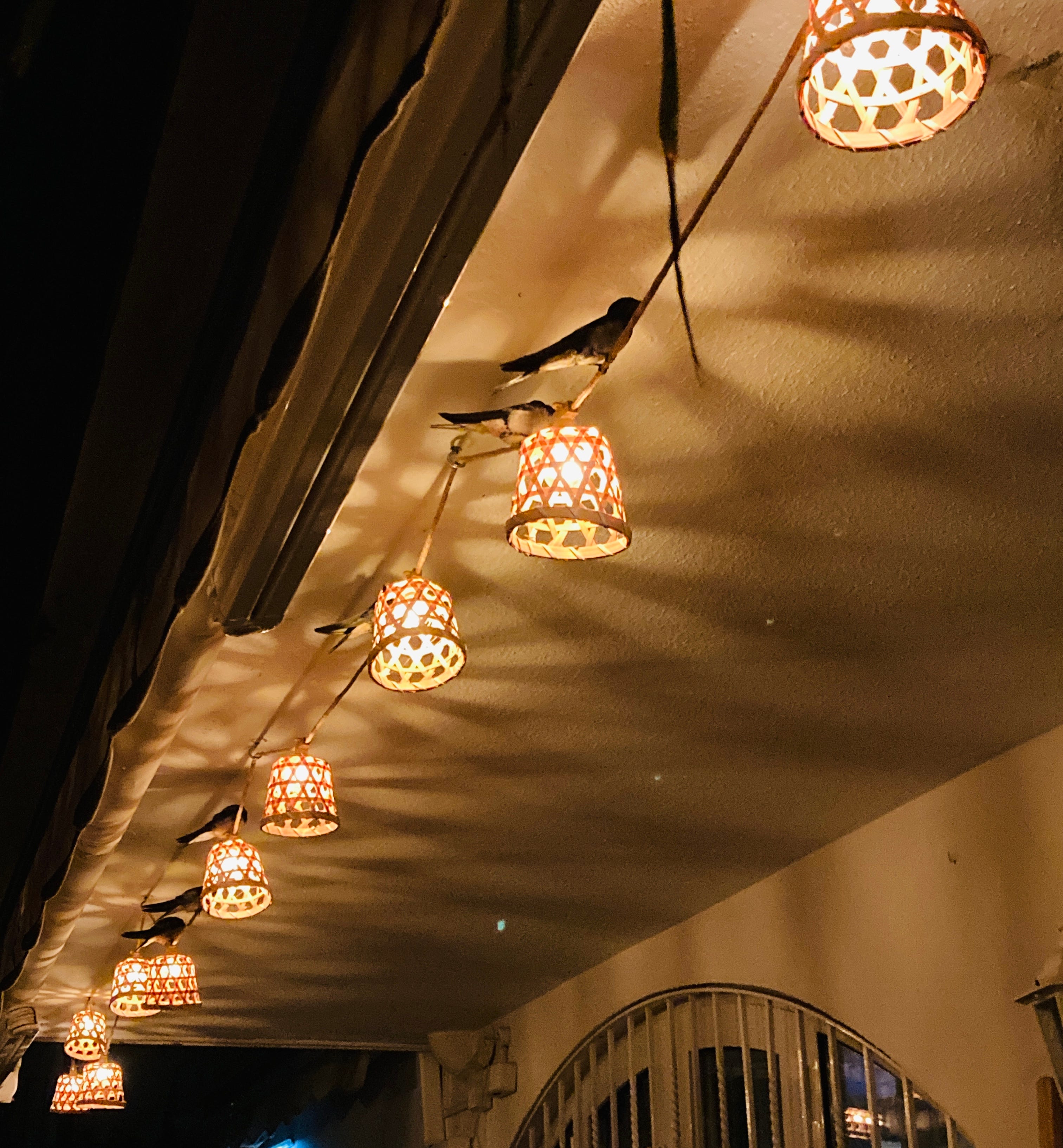 Two years ago, we put solar lights under the balcony which arch from hooks in a line. Just when we least expect it our acrobatic swallow friends have been swooping in to land on the predator-free wire. I love how these highfliers swoop in under the balcony, their sharp, fast- fluttering, triangular wings are beautifully at odds with their soft-edged, curved paths of flight, flying in a ‘bend-it-like-Beckham’ kind of way. That swoop is apparently essential; all the birds in this group fly so fast they have to use the upwards curve to slow themselves down ‘on approach’.